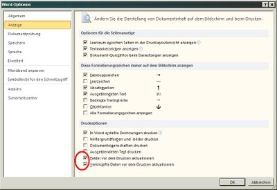 Bitte auch in den Optionen von WORD die Checkboxen "Felder aktualisieren" und "Verknüpfungen aktualisieren" aktivieren.